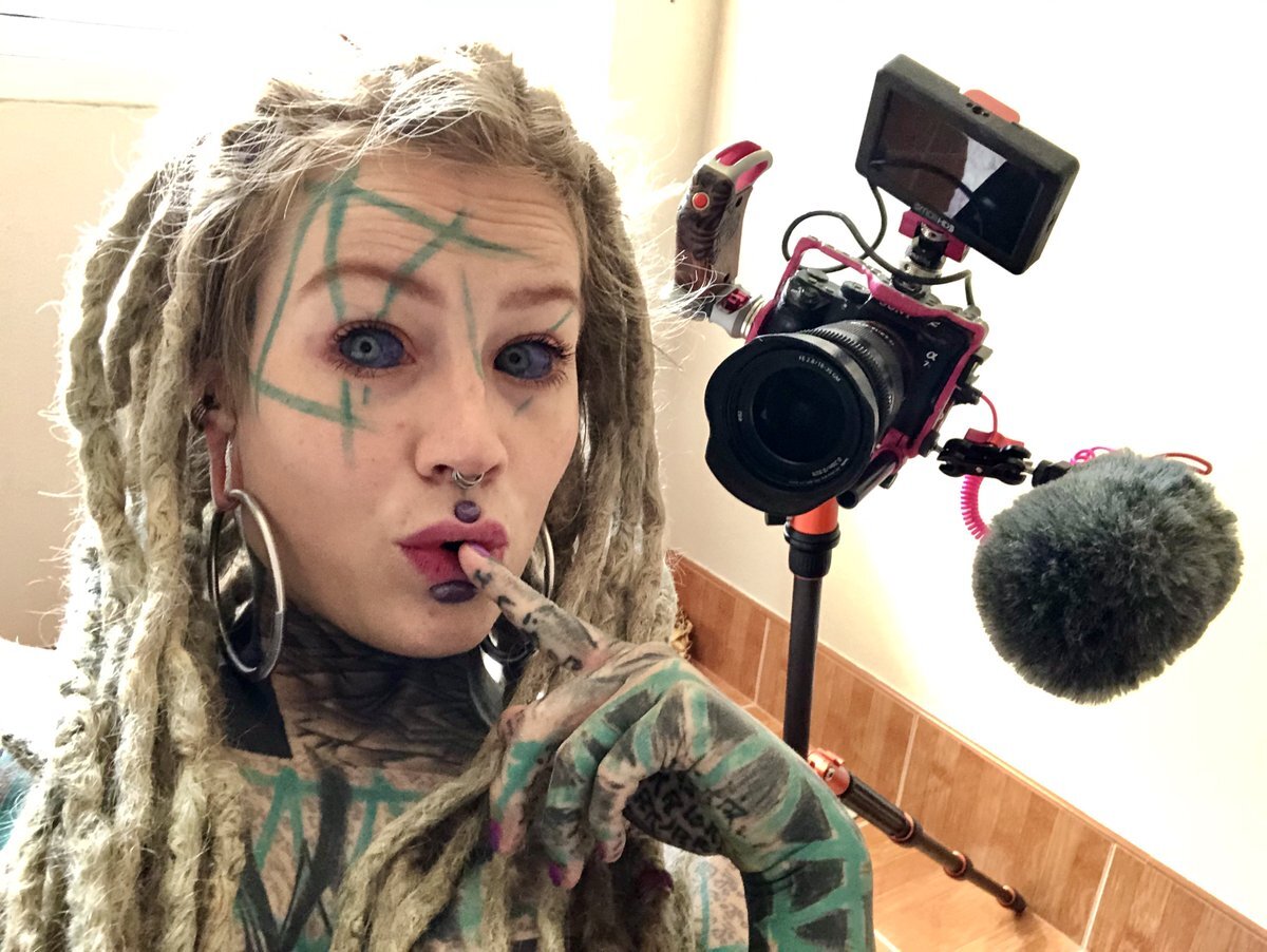 A heavily tattooed alternative dreadhead.