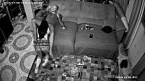 Câmera de segurança flagra enteada mamando padrasto enquanto ele fala com a esposa no telefone. 12 min